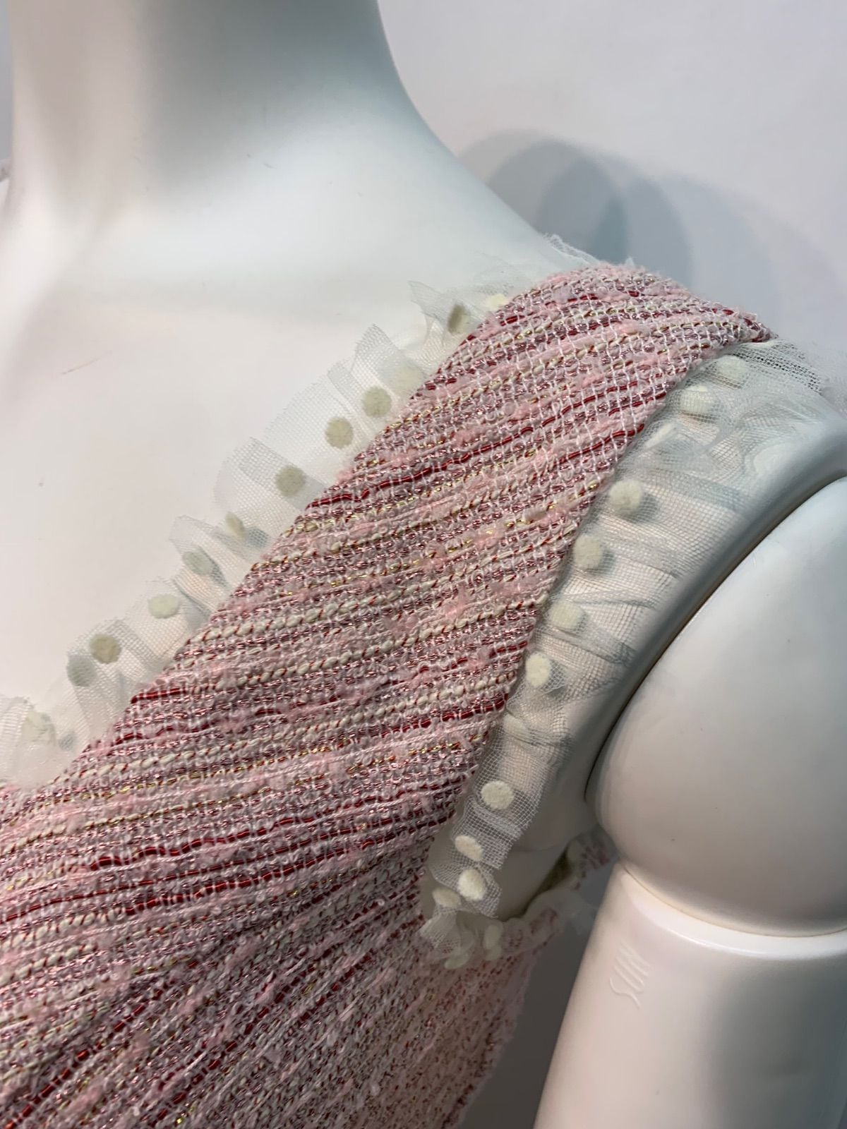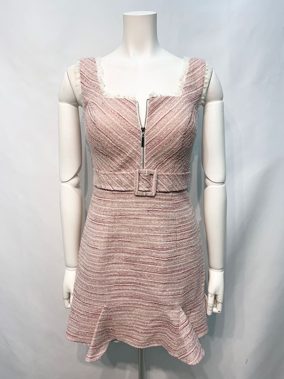 2488 ROBE de FLEURS ローブドフルール キャバクラ ドレス サマーツイード×ドットチュール ラメ レース ウエストベルトデザイン ノースリーブ タイト ミニ キャバドレス M