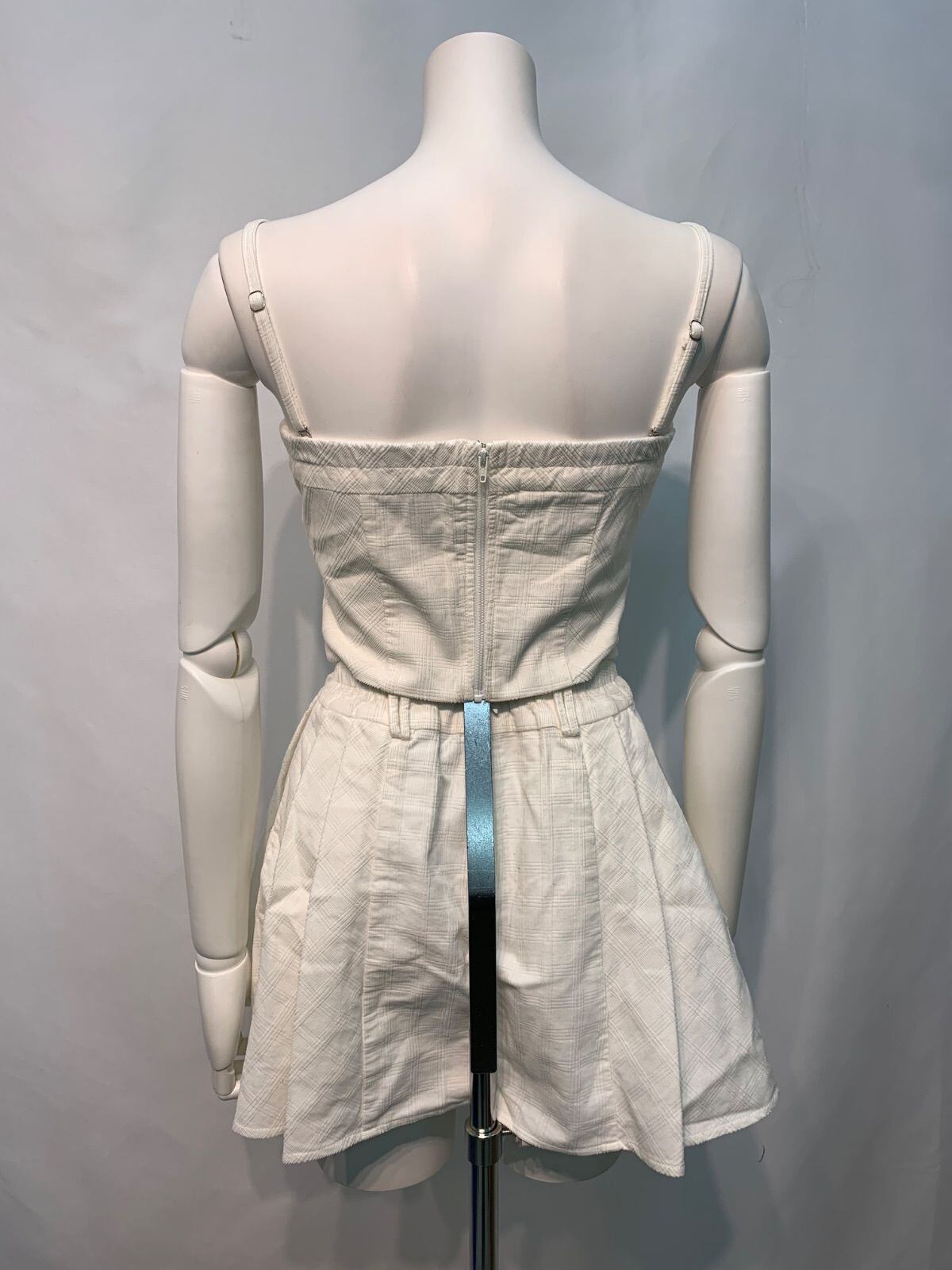 2487 ROBE de FLEURS Glossy ローブドフルール グロッシー キャバクラ ドレス セットアップ スエードチェックベア×プリーツミニ タイト キャミ キャバドレス S