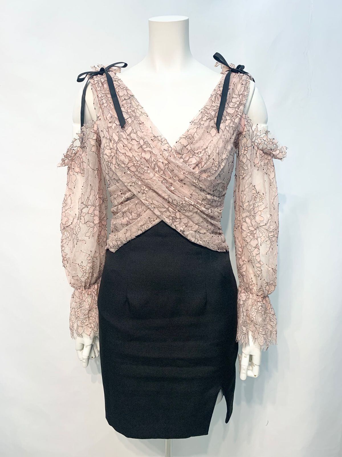 2465 an アン キャバクラ ドレス レース リボン タイト ミニ 伸縮性 キャバドレス S