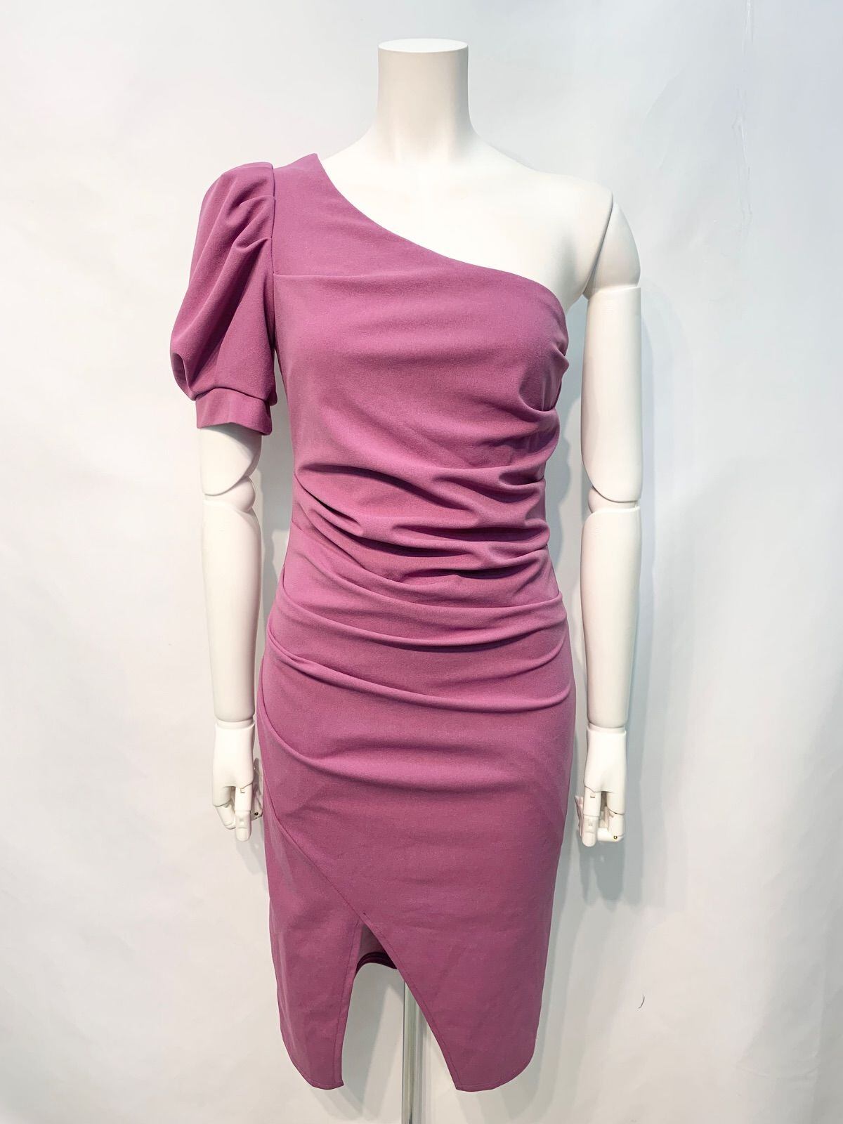 2451 FEIMAN キャバクラ ドレス ワンショルダー 伸縮性 スリット ミディ タイト ギャザー キャバドレス S