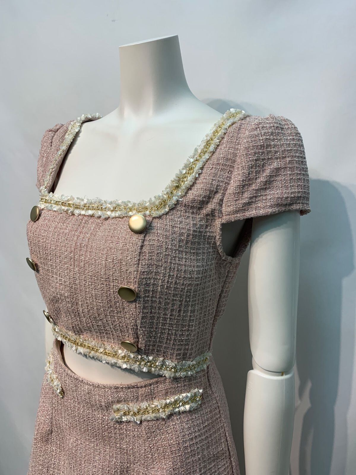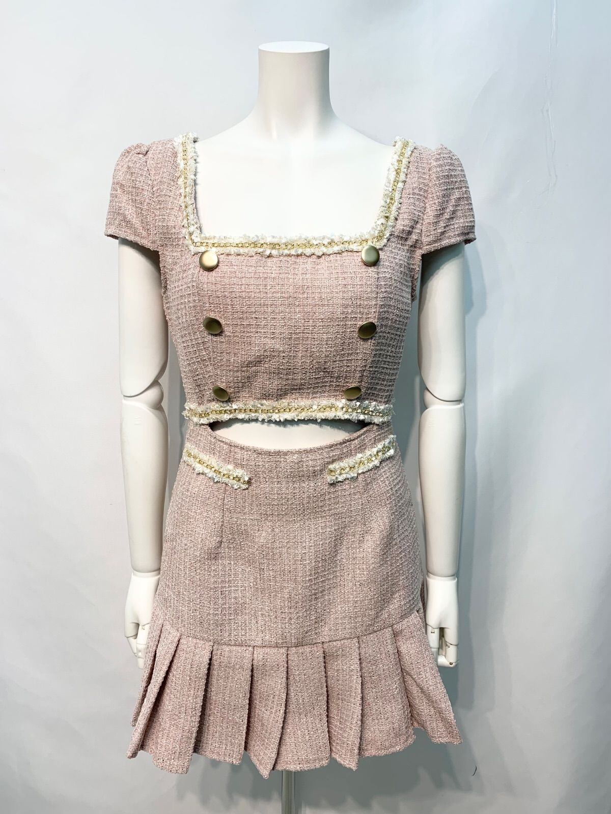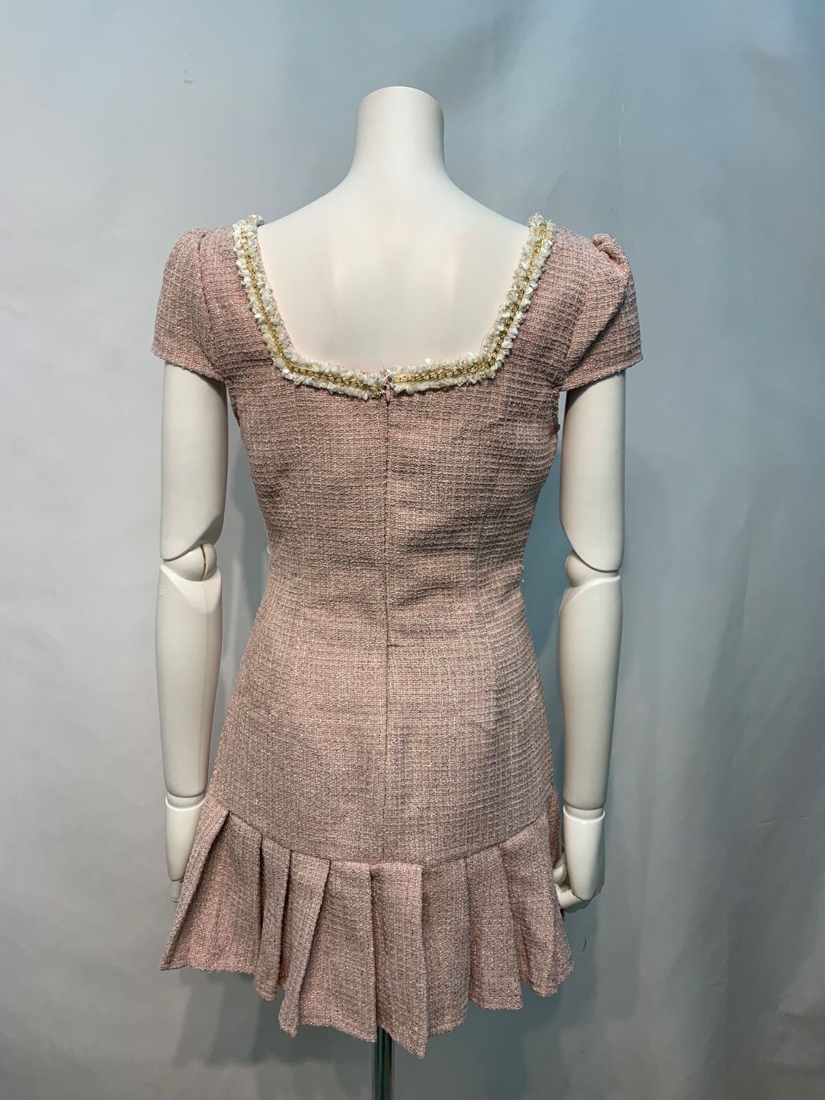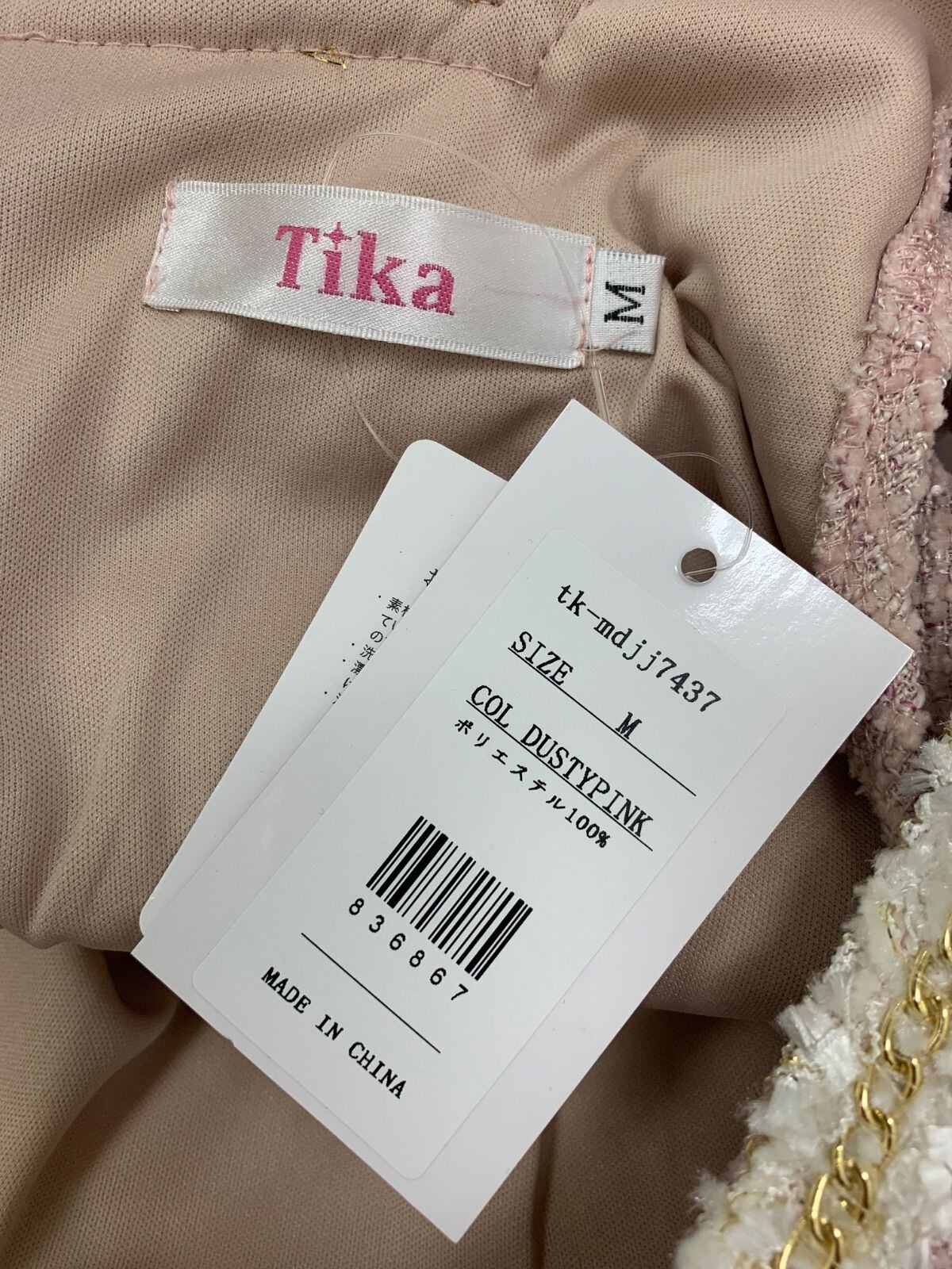2446 未使用タグ付き Tika ティカ キャバクラ ドレス ツイード ラメ スクエアネック チェーン ウエストカット プリーツ ミニ タイト キャバドレス M