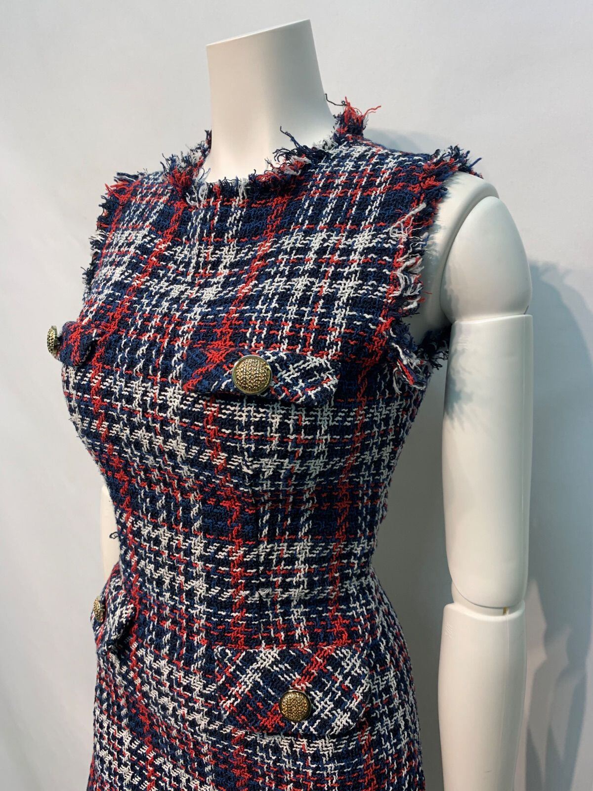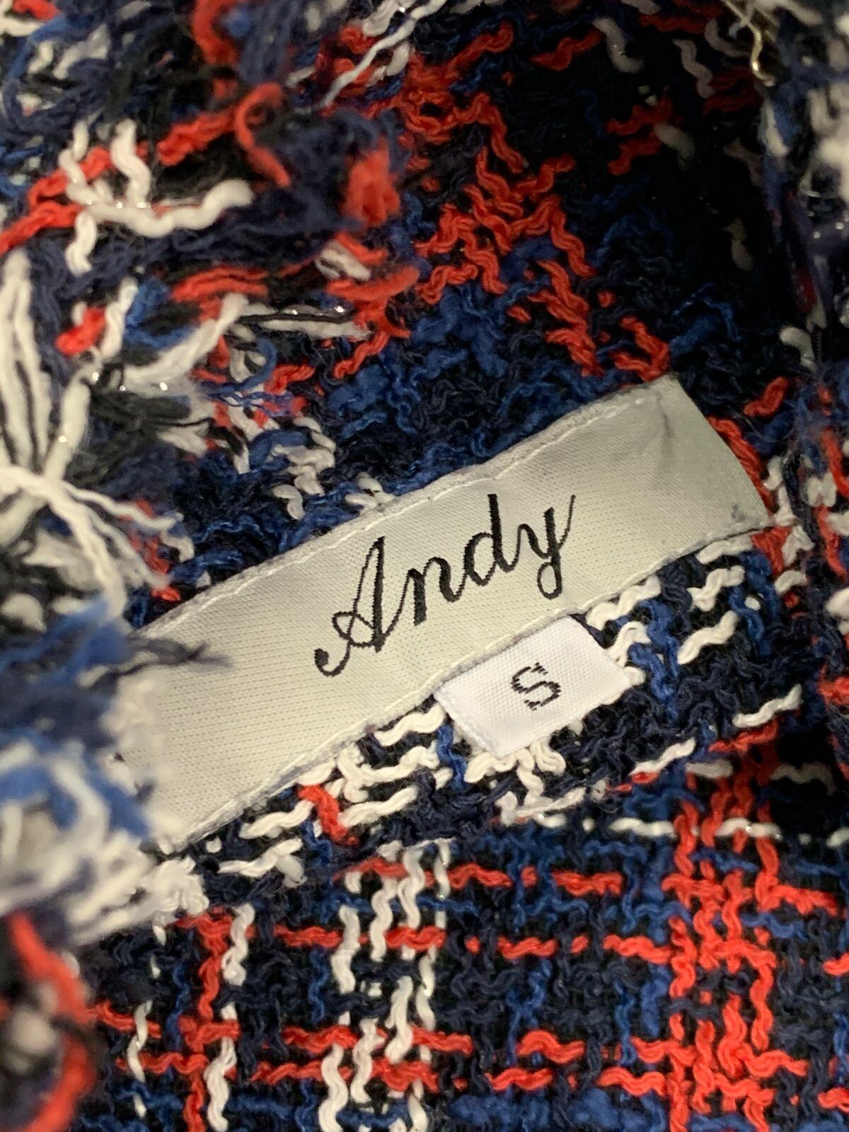 2439 Andy アンディ キャバクラ ドレス ツイード ゴールドボタン ノースリーブ ミニ タイト フリンジ キャバドレス S