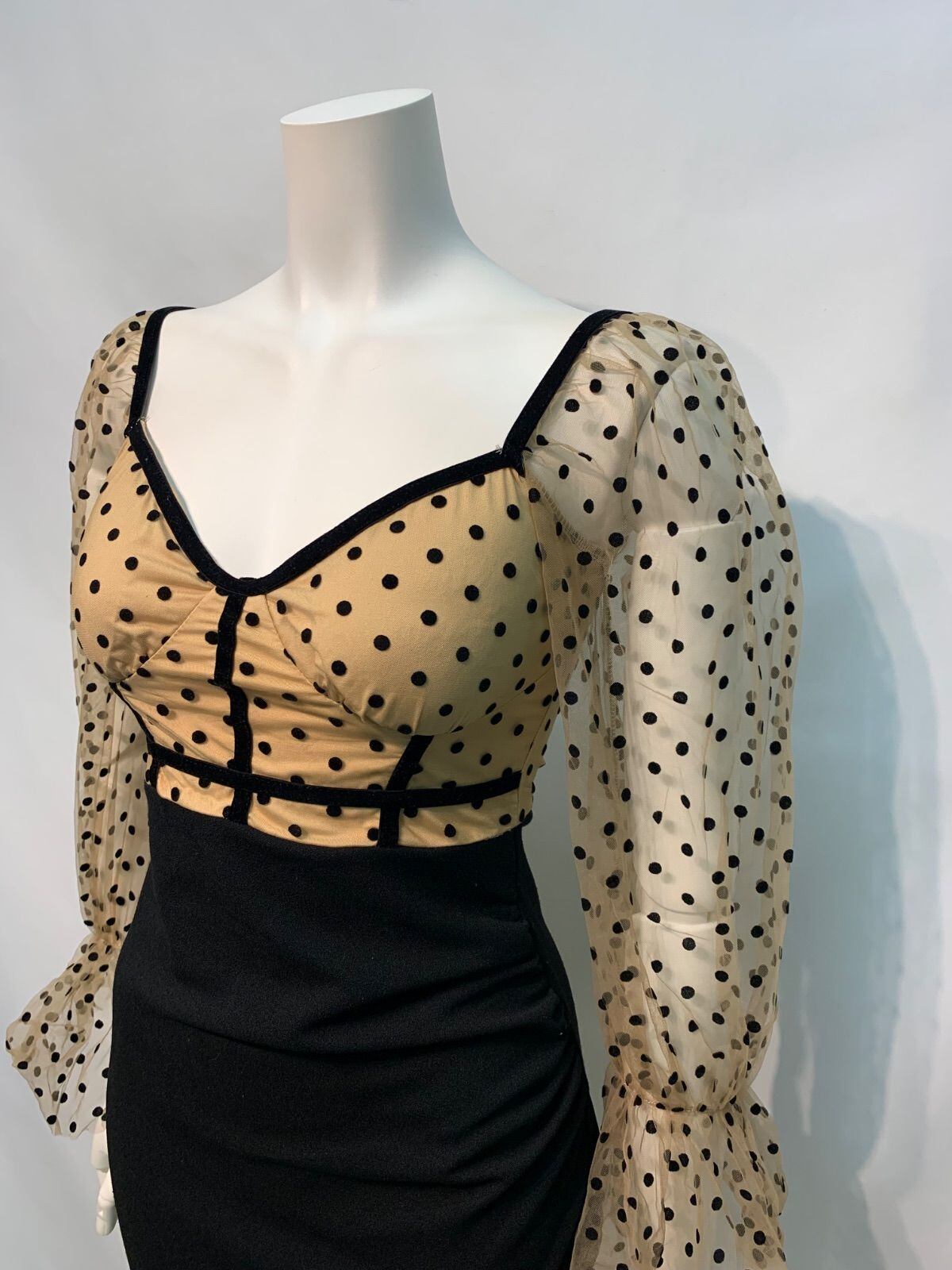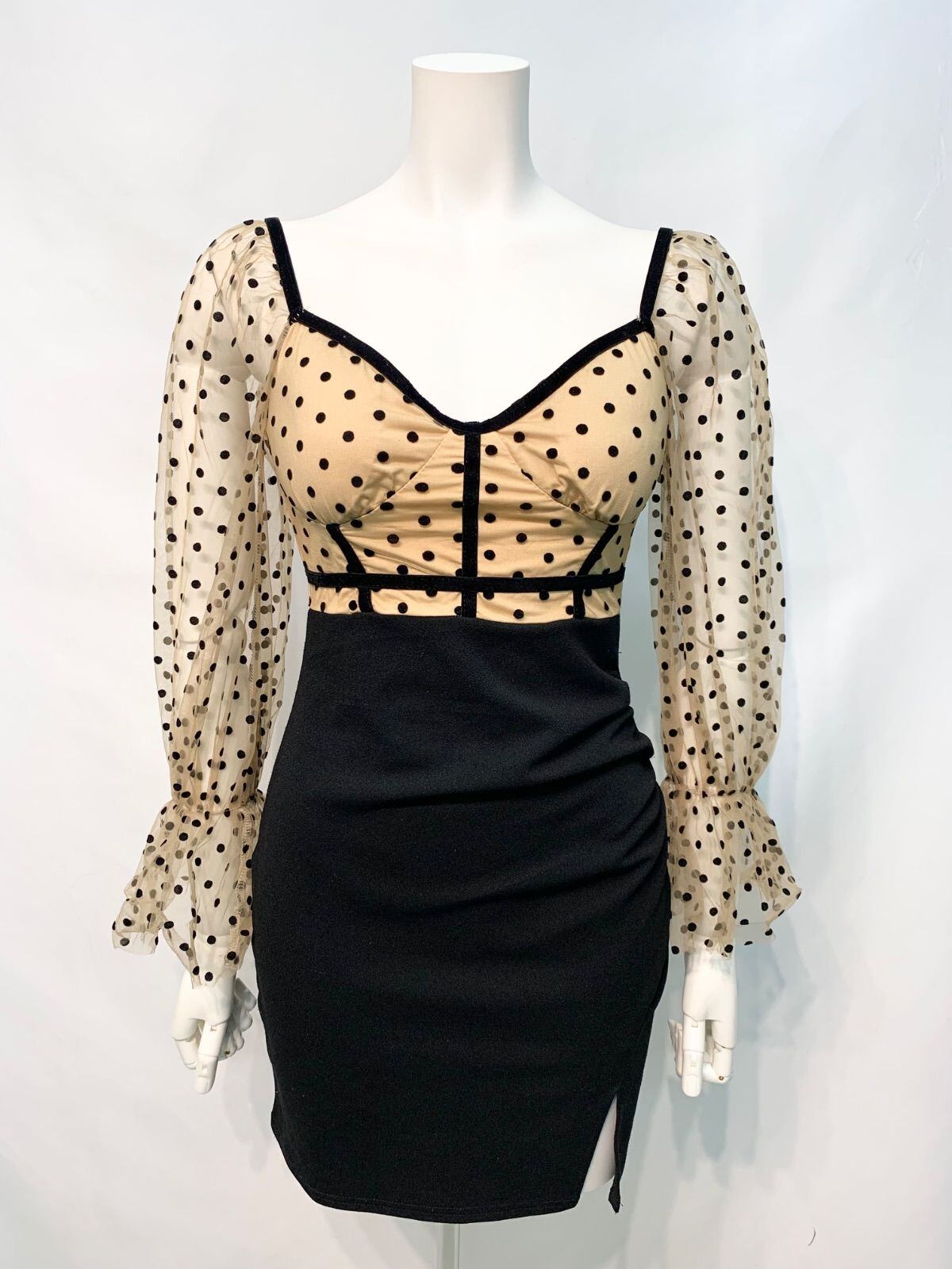 2432 キャバクラ ドレス ドット シースルー タイト ミニ 伸縮性 キャバドレス S