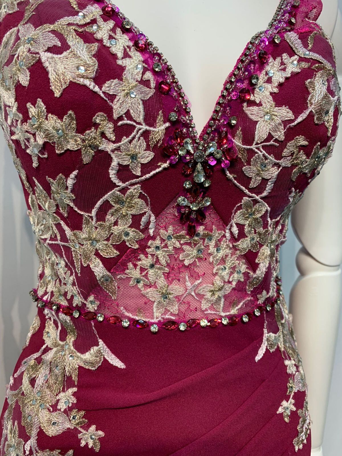 2422 IRMA イルマ キャバクラ ロングドレス 伸縮性 スリット 刺繍 フラワー タイト シースルー キラキラ ストーン キャバドレス M