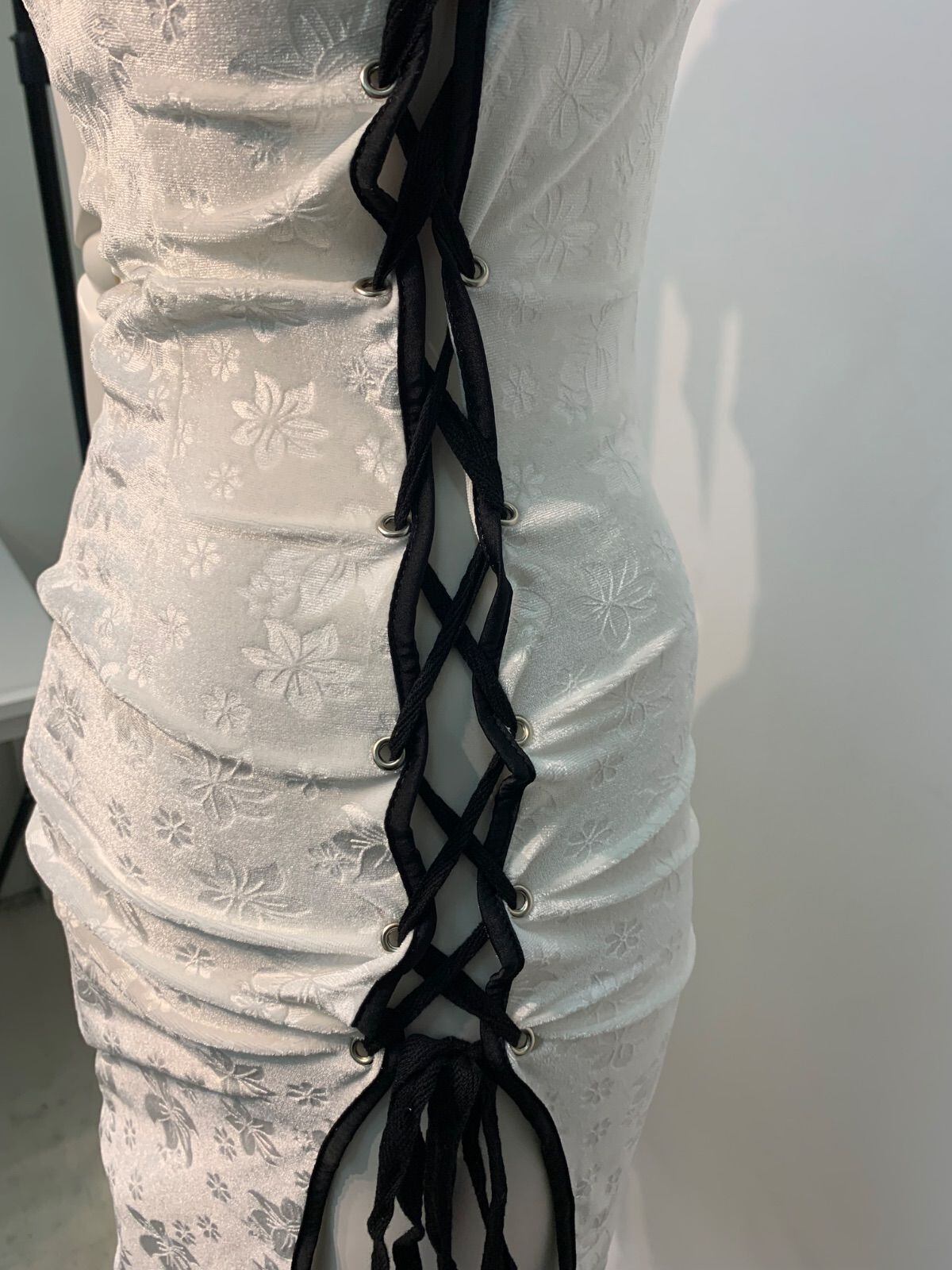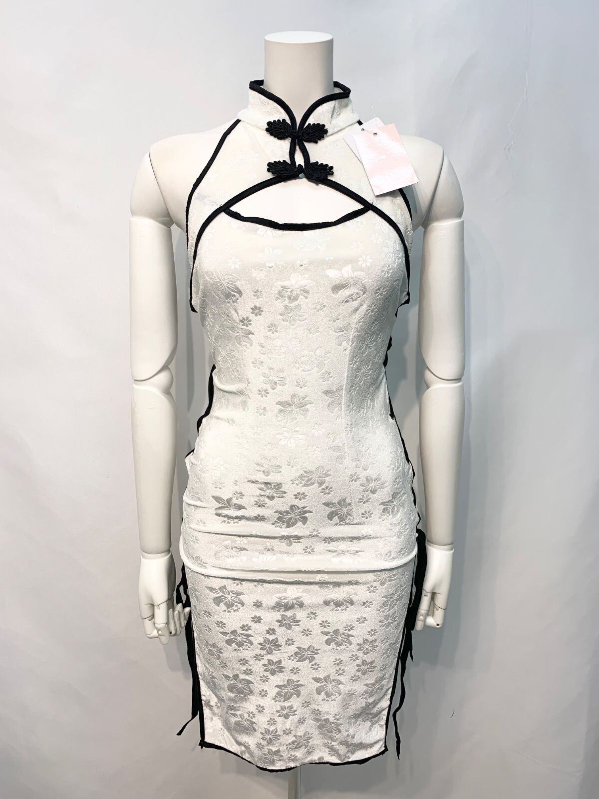 2375 未使用タグ付き Tika ティカ キャバクラ チャイナドレス ベロア 花柄 アメスリ ホルターネック コスプレ タイト ミディ イベント キャバドレス M