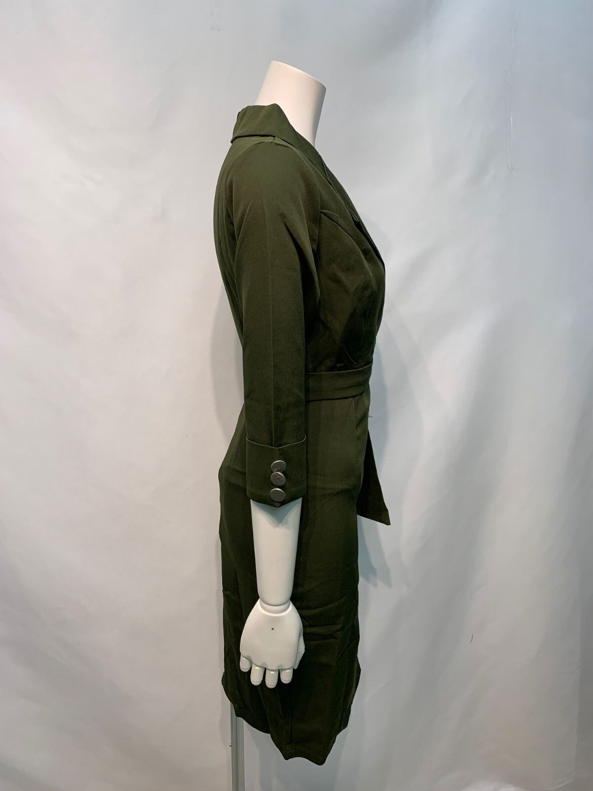 2342 キャバクラ ドレス ミディ ウエストベルト 襟付き タイト 七分袖 キャバドレス S