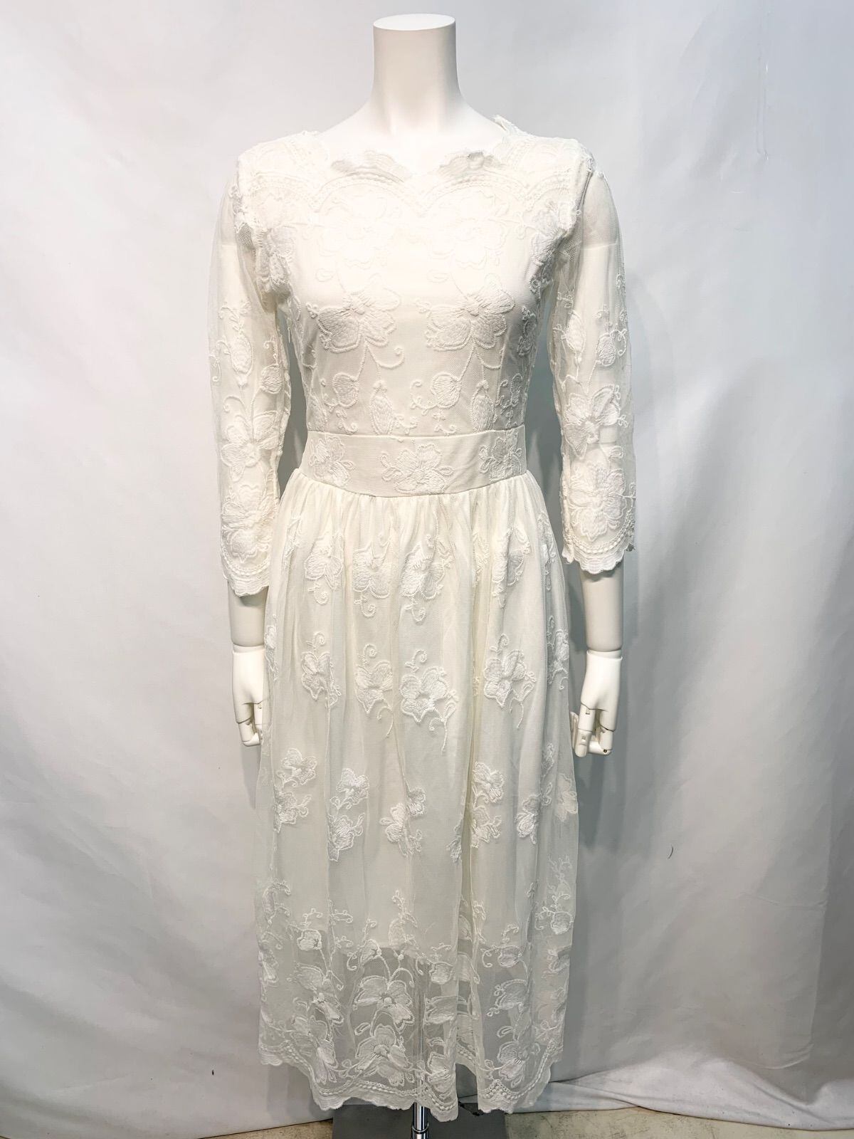 2341 キャバクラ ロングドレス総レース フラワー タイト フレア キャバドレス S