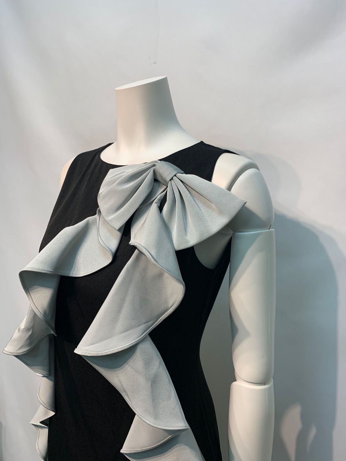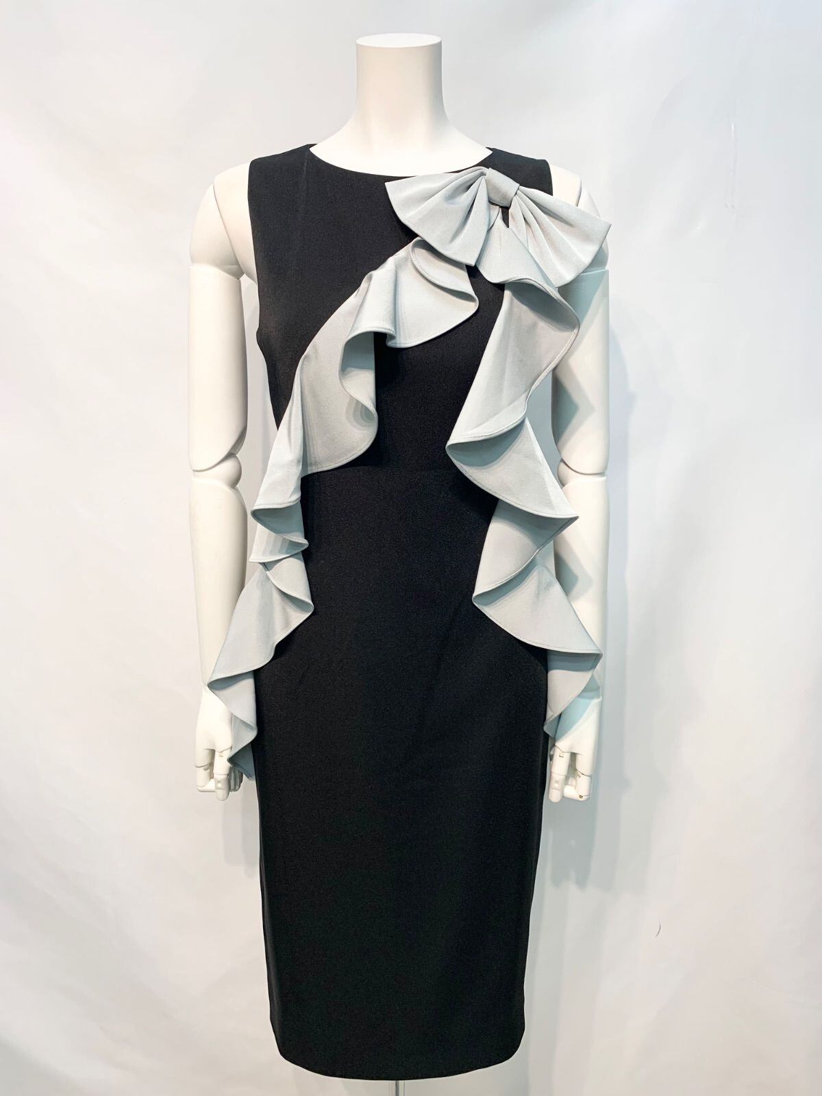 2319 ERUKEI エルケイ キャバクラ ドレス フリル リボン ノースリーブ タイト ミディ 伸縮性 キャバドレス 2サイズ