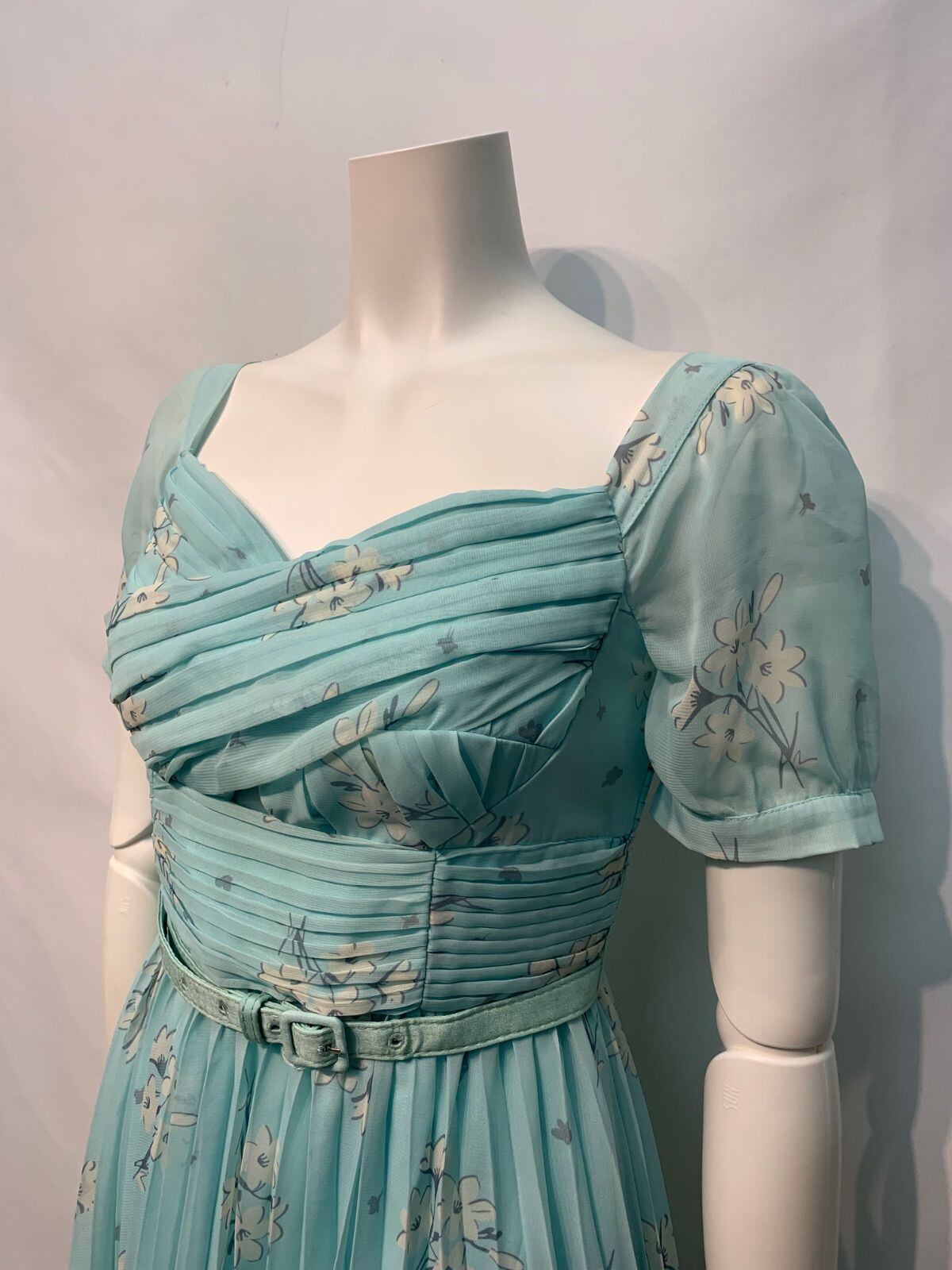 2313 キャバクラ ロングドレス プリーツ フラワー 花柄 シフォン イベント パーティー お呼ばれ キャバドレス S