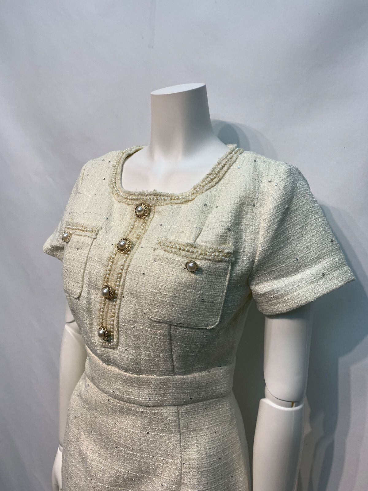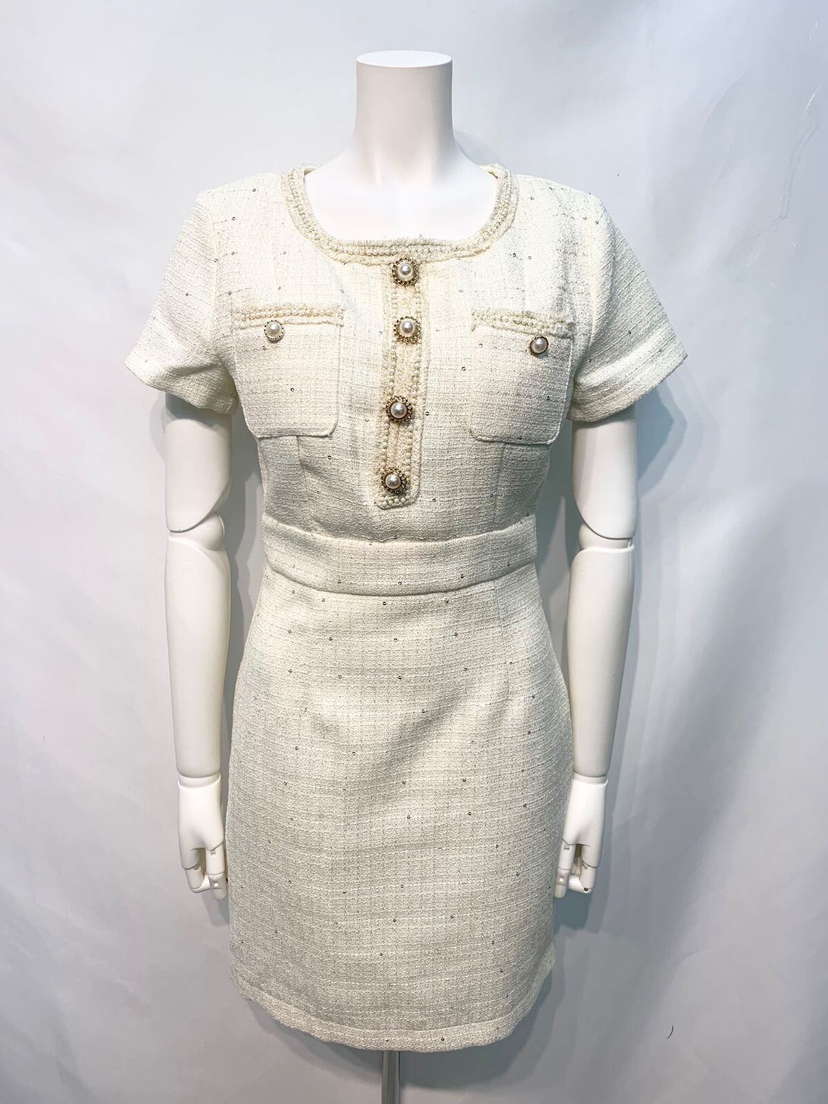 2289 DAZZY デイジー キャバクラ ドレス ツイード ラメ スパンコール パールボタン タイト ミニ キャバドレス M