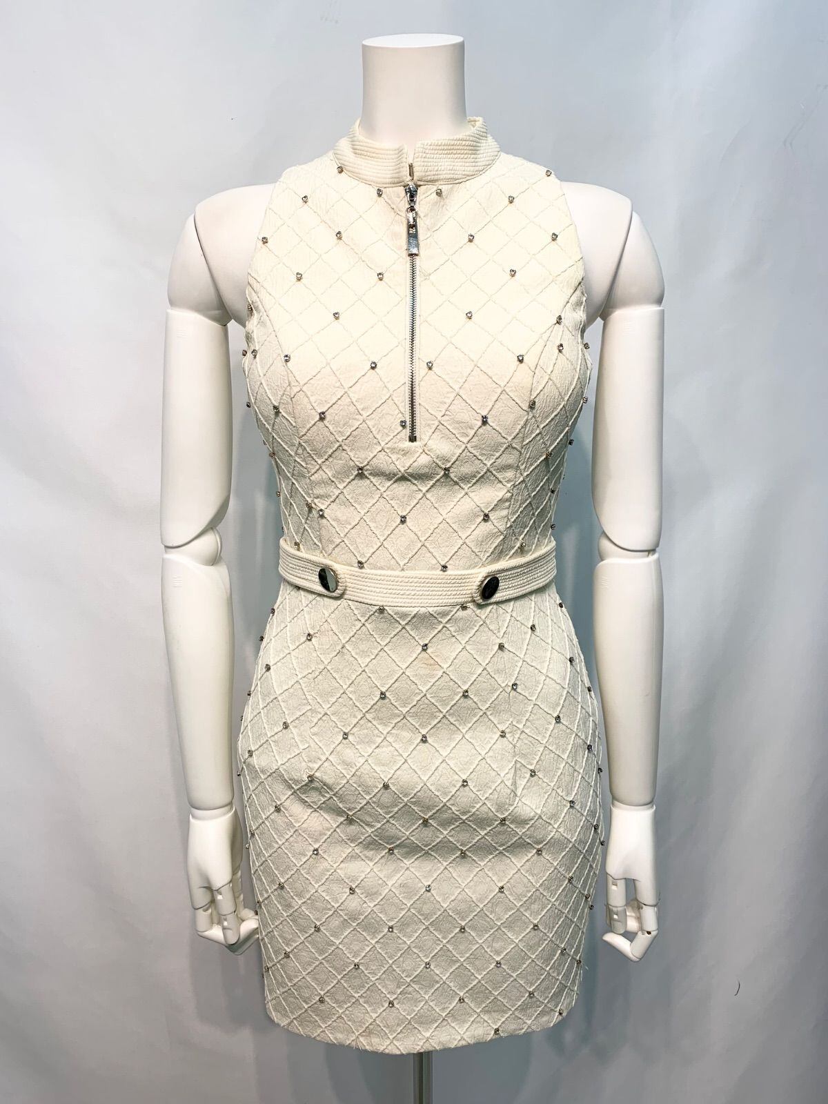 2642 ROBE de FLEURS Glossy ローブドフルール グロッシー キャバクラ ドレス ストーンノースリーブ タイト ミニ ジップ キャバドレス S