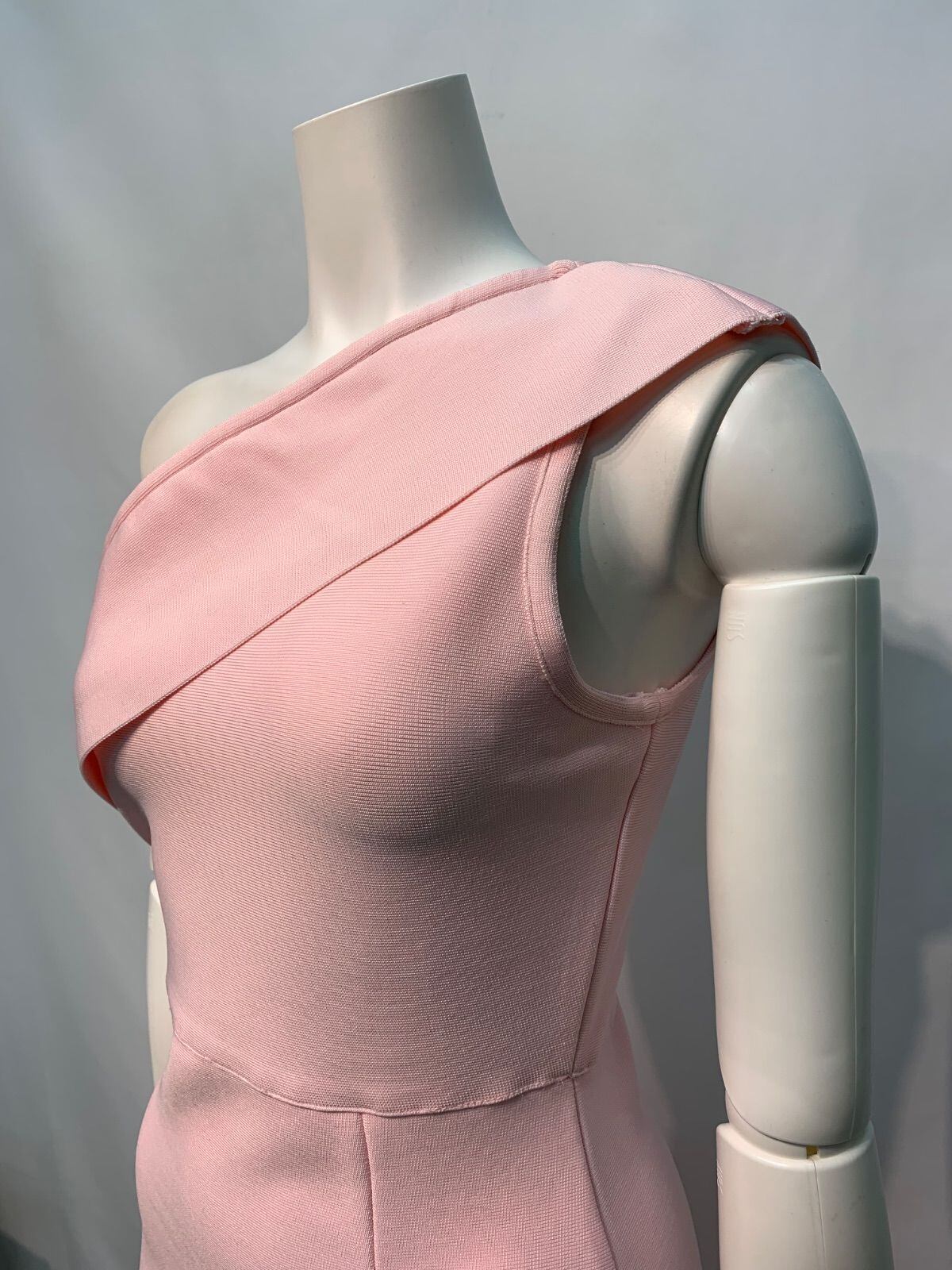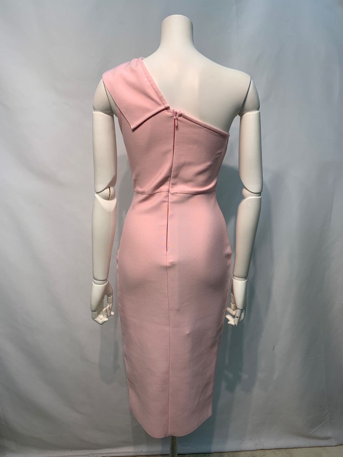 2638 キャバクラ ドレス ワンショルダー タイト ミディ スリット 伸縮性 無地 シンプル キャバドレス S
