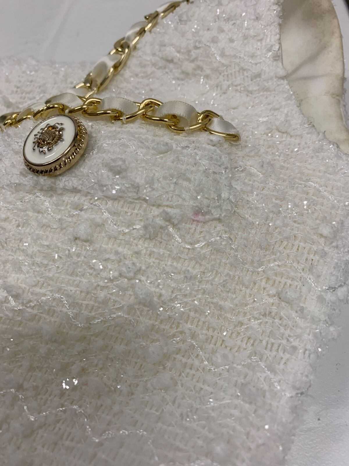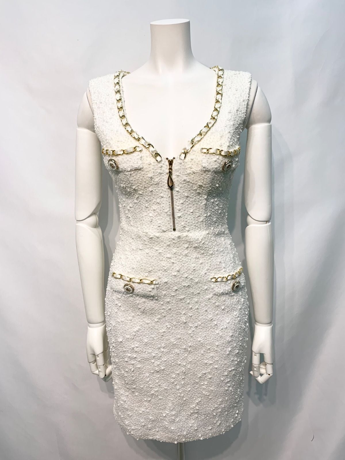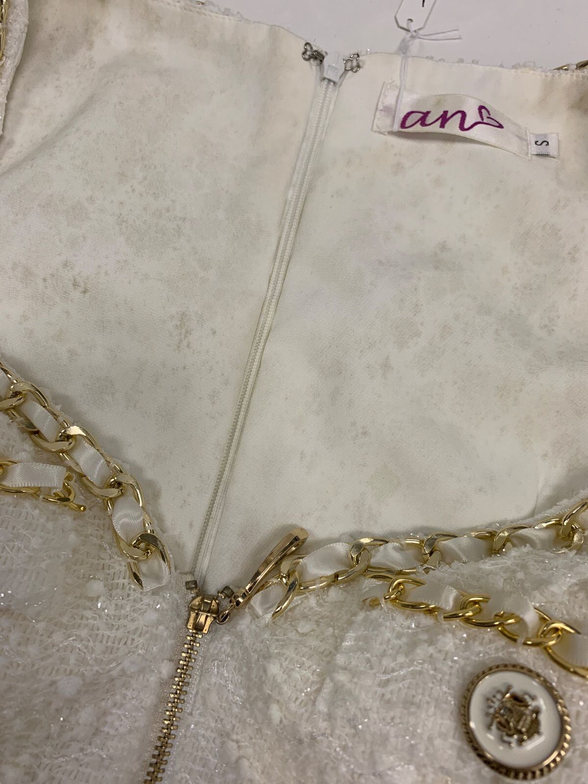 2634 an アン キャバクラ ドレス ツイード スパンコール 伸縮性 ゴールドチェーン ノースリーブ タイト ミニ キャバドレス S