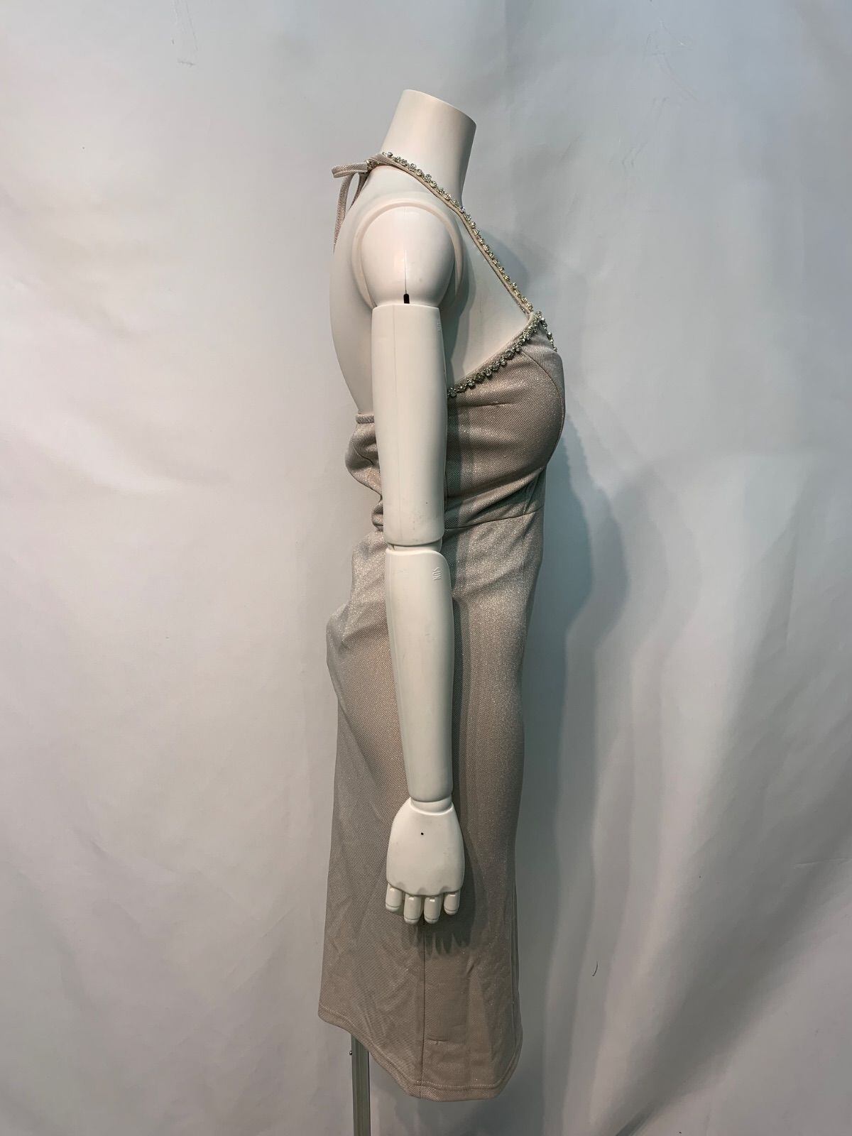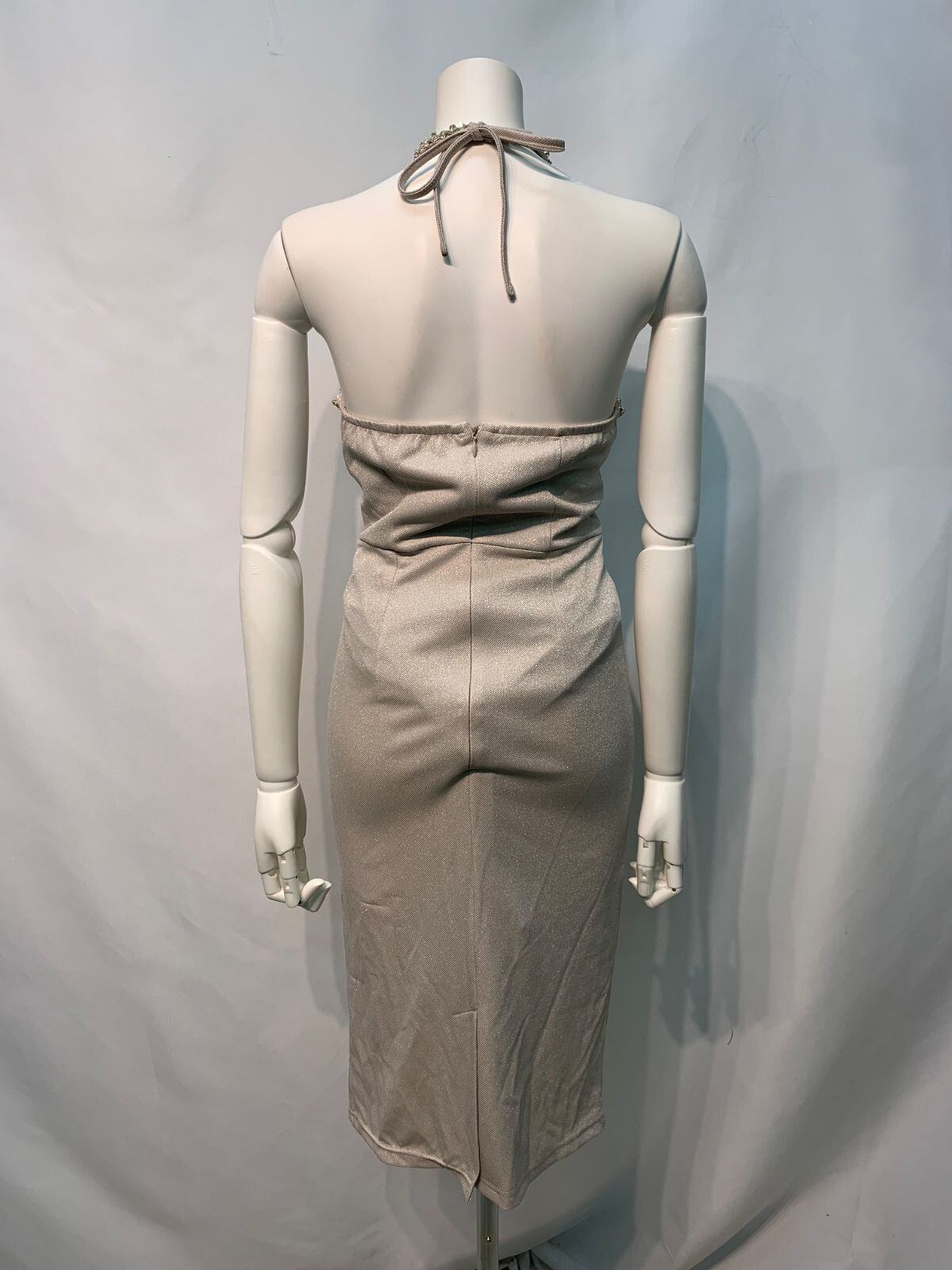 2626 JEWELS ジュエルズ キャバクラ ドレス ラメ ストーン ホルターネック ミディ タイト スリット 伸縮性 キャバドレス S