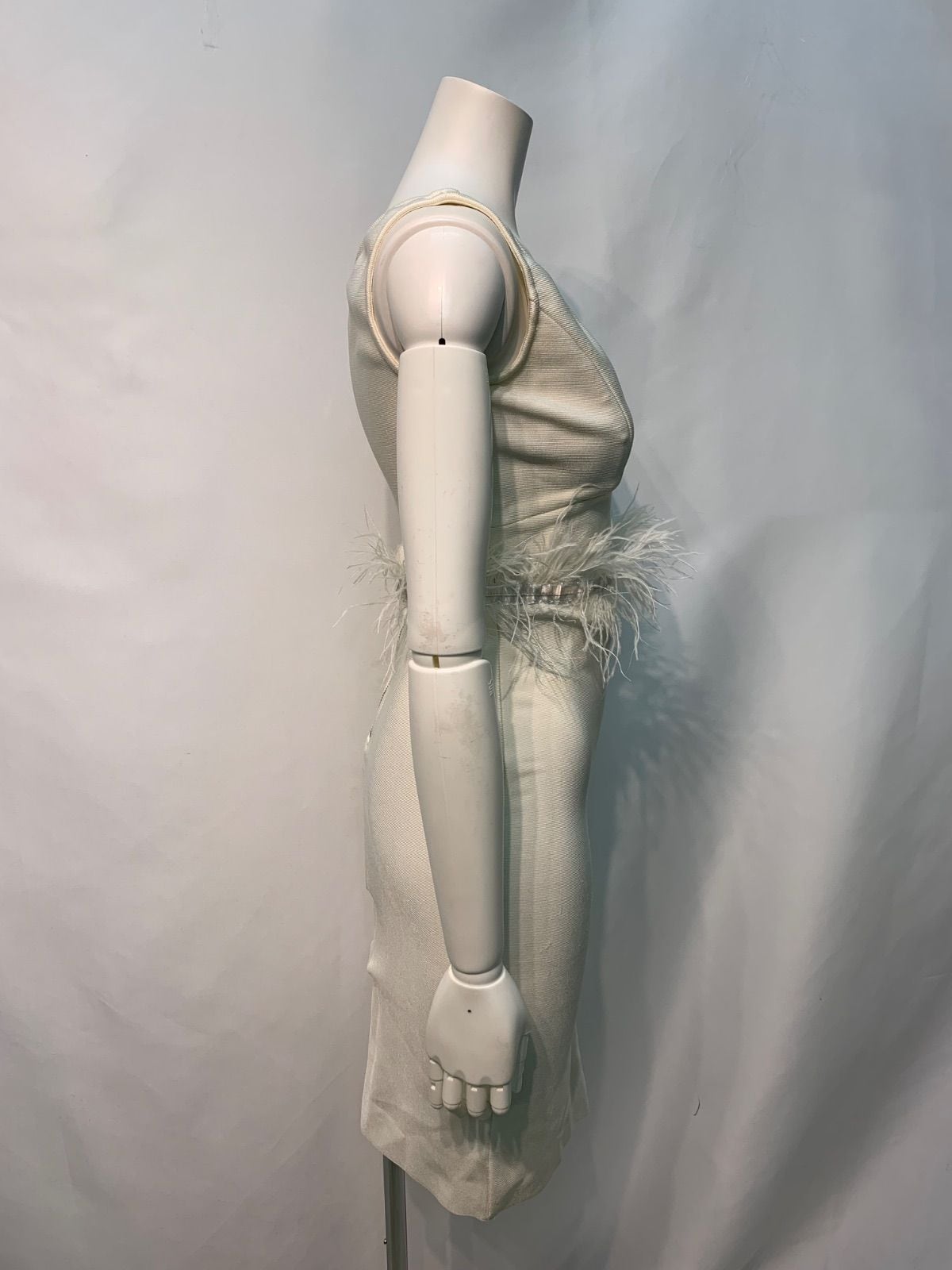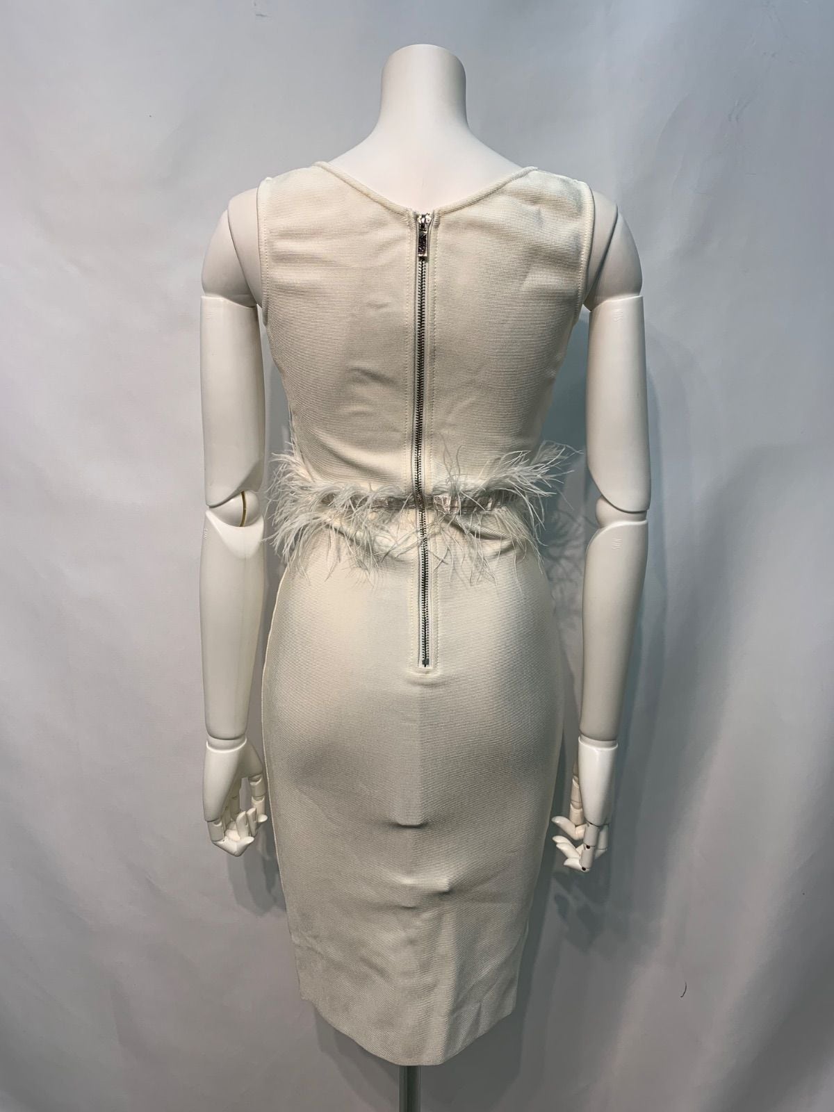 2625 キャバクラ ドレス 伸縮性 フェザー ノースリーブ ミディ タイト キャバドレス